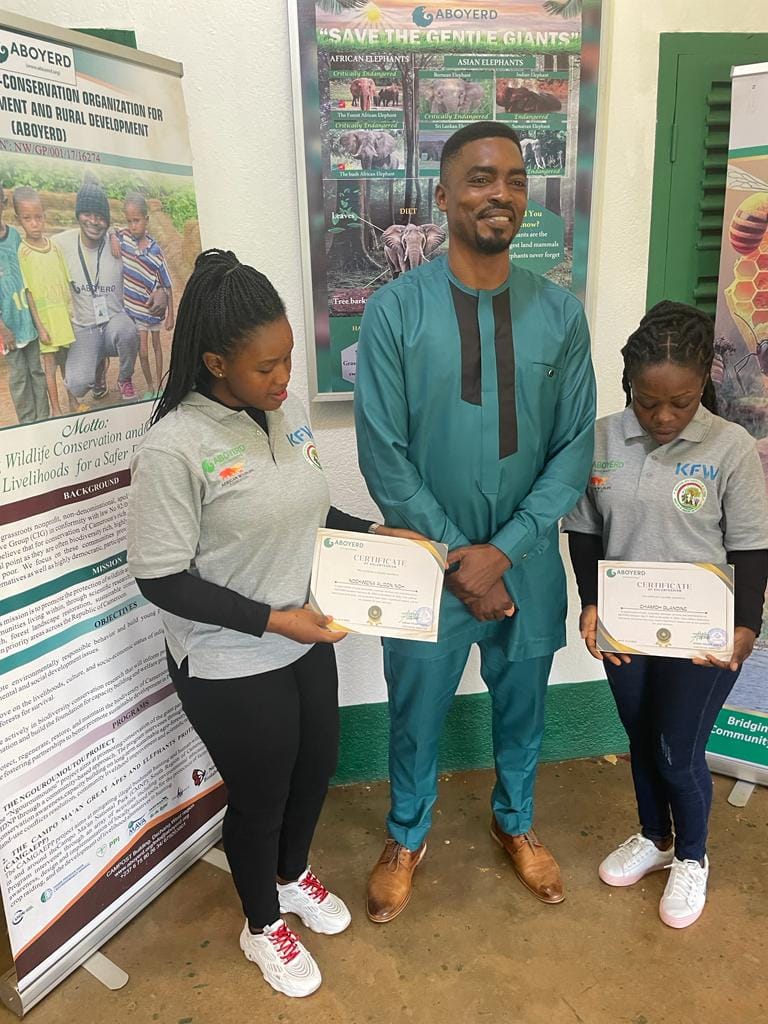 Officially recognized as an Association with the registration number 96B/ARDA/F.34/SAAJP under the law number 90/053 of 19/12/1990, in the Republic of Cameroon, ABOYERD stands as a beacon of hope in Cameroon’s conservation landscape. This grassroots nonprofit is dedicated to bridging the gap between environmental sustainability and community livelihoods, emphasizing the vital role of indigenous populations in preserving the nation’s rich biodiversity. By fostering conservation awareness, designing and implementing nature-based solutions to devastating conservation problems such as human-wildlife conflicts and habitat destruction, and providing sustainable livelihood alternatives, ABOYERD empowers local communities to actively participate in protecting their natural resources while improving their socio-economic conditions.